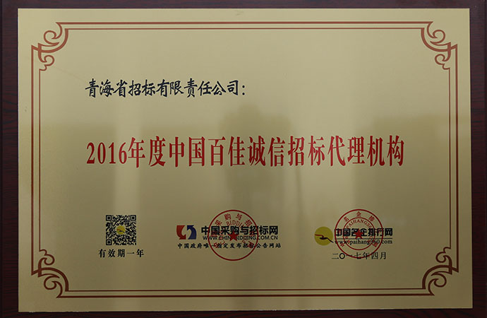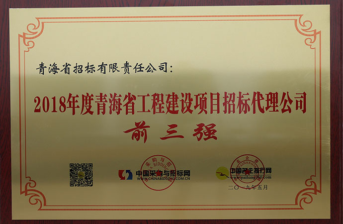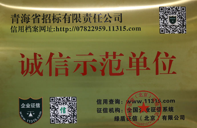 COMPANY HONORS青海省招標(biāo)有限責(zé)任公司公司榮譽(yù)
