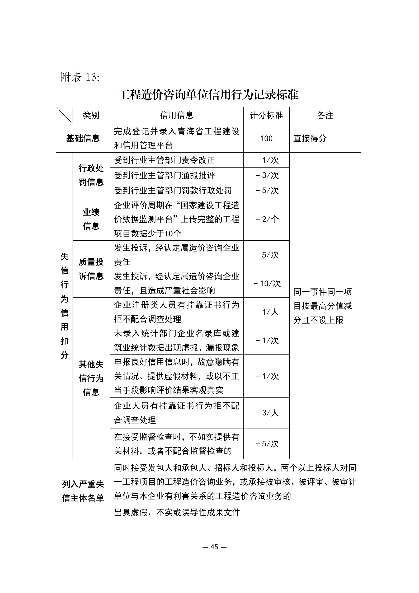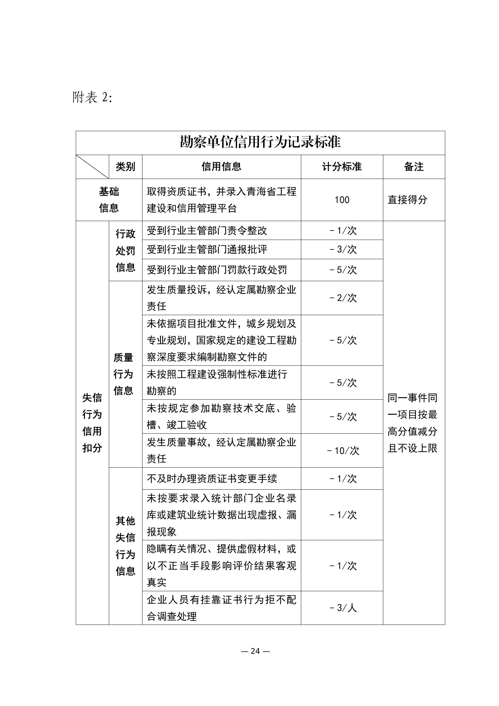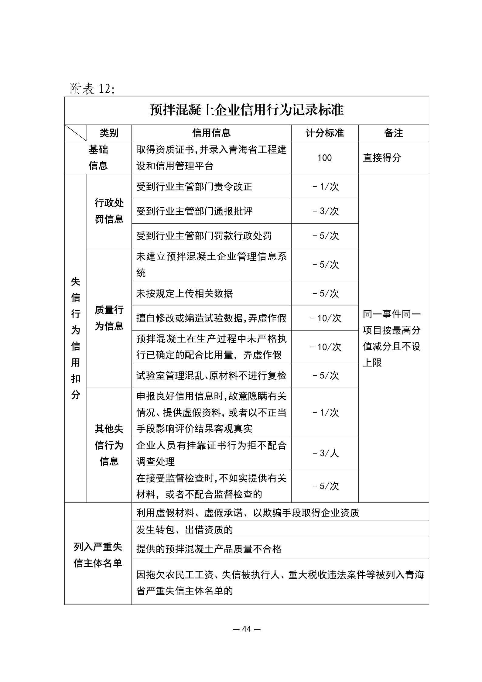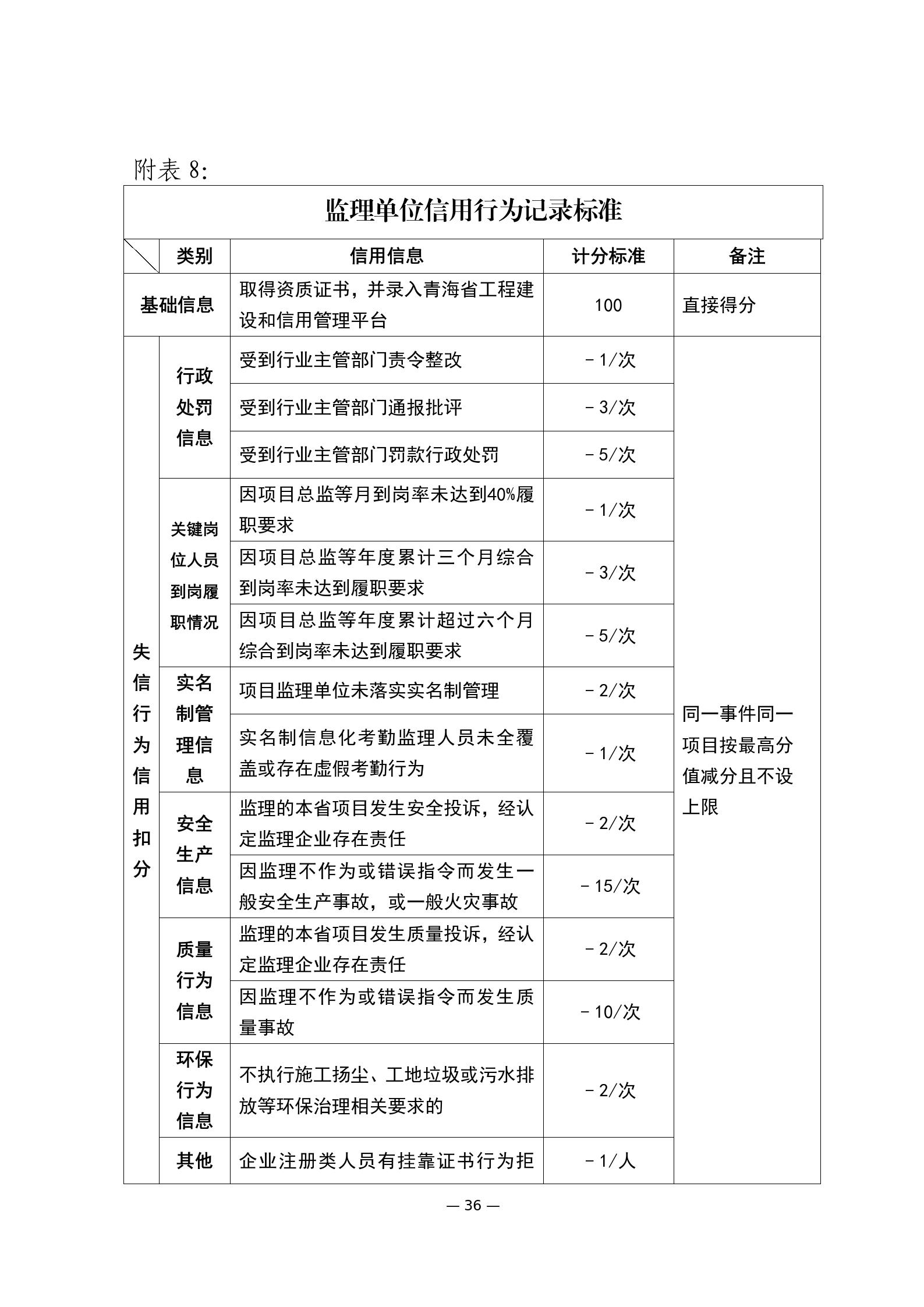 第十六條 建筑市場各方主體和從業(yè)人員的信用評價(jià)實(shí)行信用記錄、守信獎(jiǎng)勵(lì)和失信行為動態(tài)記錄記分制。根據(jù)《青海省建筑市場各方主體和從業(yè)人員失信行為記分標(biāo)準(zhǔn)》(附件)進(jìn)行公開展示和記分。基礎(chǔ)分100分。